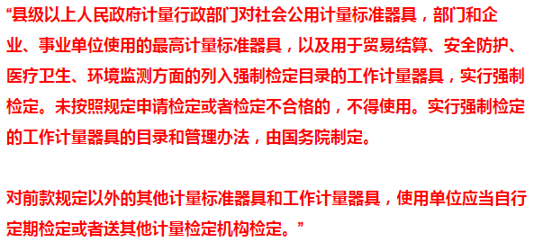 第九条款的内容信息量比较丰富,基本上规定了计量器具的强制检定实施主体(县级以上人民计量行政部门),计量器具的非强制检定实施主体(使用单位),也就是说,如果被列入强制检定目录范围内的计量器具,应当由部门进行检定,如果没有被列入强制检定目录范围的,应当由使用单位自行检定。换句话说,无论是否被列入强制检定目录范围,都应当进行定期检定,只是执行主体不同而已。而并不是说,没有列入强制检定目录的话,就可以不用检定了。